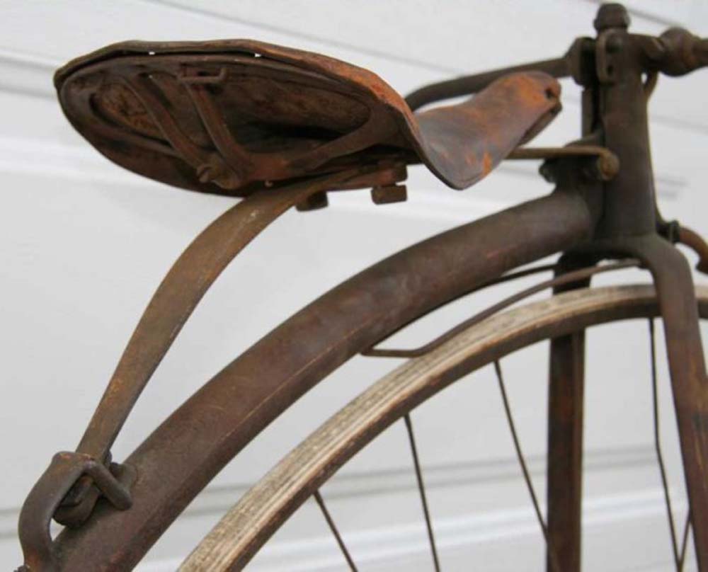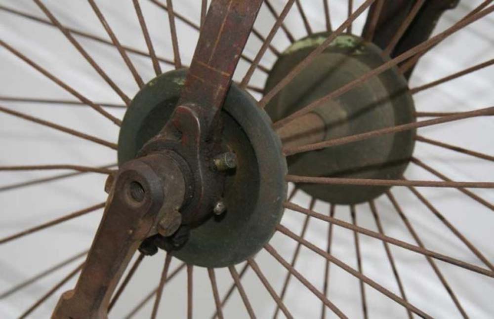 This Ideal hasn't even got ball bearings on the front hub, which was really an outdated construction in the late 1880's. It xcertainly must have been a cheap bike in those years.